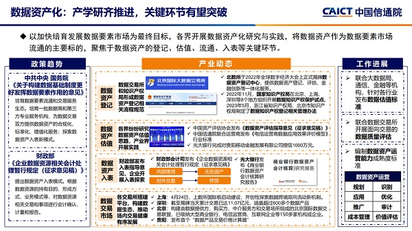 以加快培育发展数据要素市场为最终目标,产学研各界纷纷开展数据资产化研究与实践。