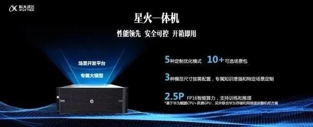 星火一体机基于鲲鹏CPU+昇腾GPU,另外还采用了华为存储和网络提供整机柜方案,FP16(半精度浮点数格式)算力2.5 petaFLOPS(1 petaFLOPS为每秒运行一千万亿次浮点运算)。在大模型训练中最为流行的英伟达DGX A100,其单节点包含8块GPU,可以输出5 PetaFLOPS的FP16算力。