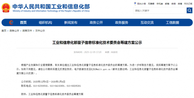 近日消息,工信部官网发布消息,根据产业发展和行业管理需要,有关单位提出工业和信息化部量子信息标准化技术委员会的筹建方案。