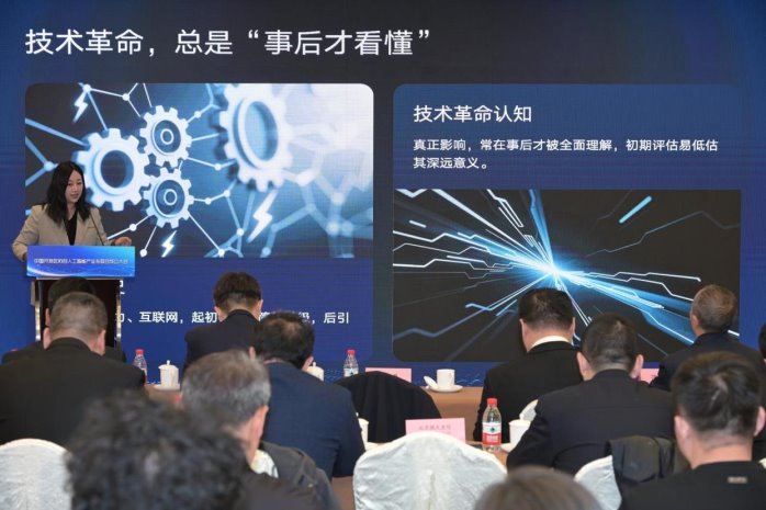 人工智能产业专业委员会副主任冯程程作了专委会工作汇报,系统介绍了专委会的成立背景、总体定位及未来两年的重点工作方向。她表示,专委会将围绕人工智能赋能开发区这一核心任务,着力推进示范应用、研究咨询、产业服务、培训赋能和生态协同,努力打造连接政策、技术、产业和场景的专业平台。